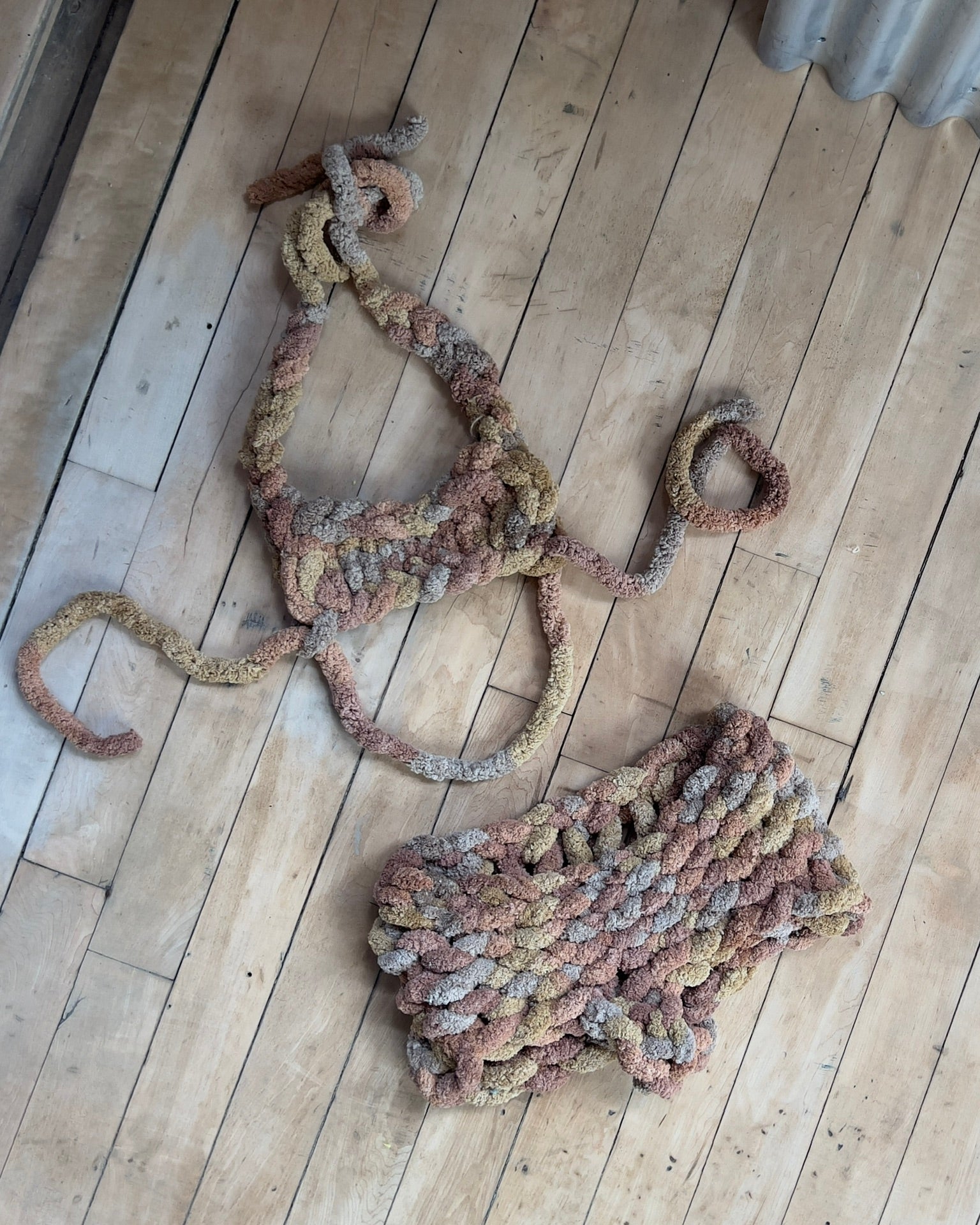 Make a statement with this hand-knitted set crafted from super-soft tie-dye chenille wool.